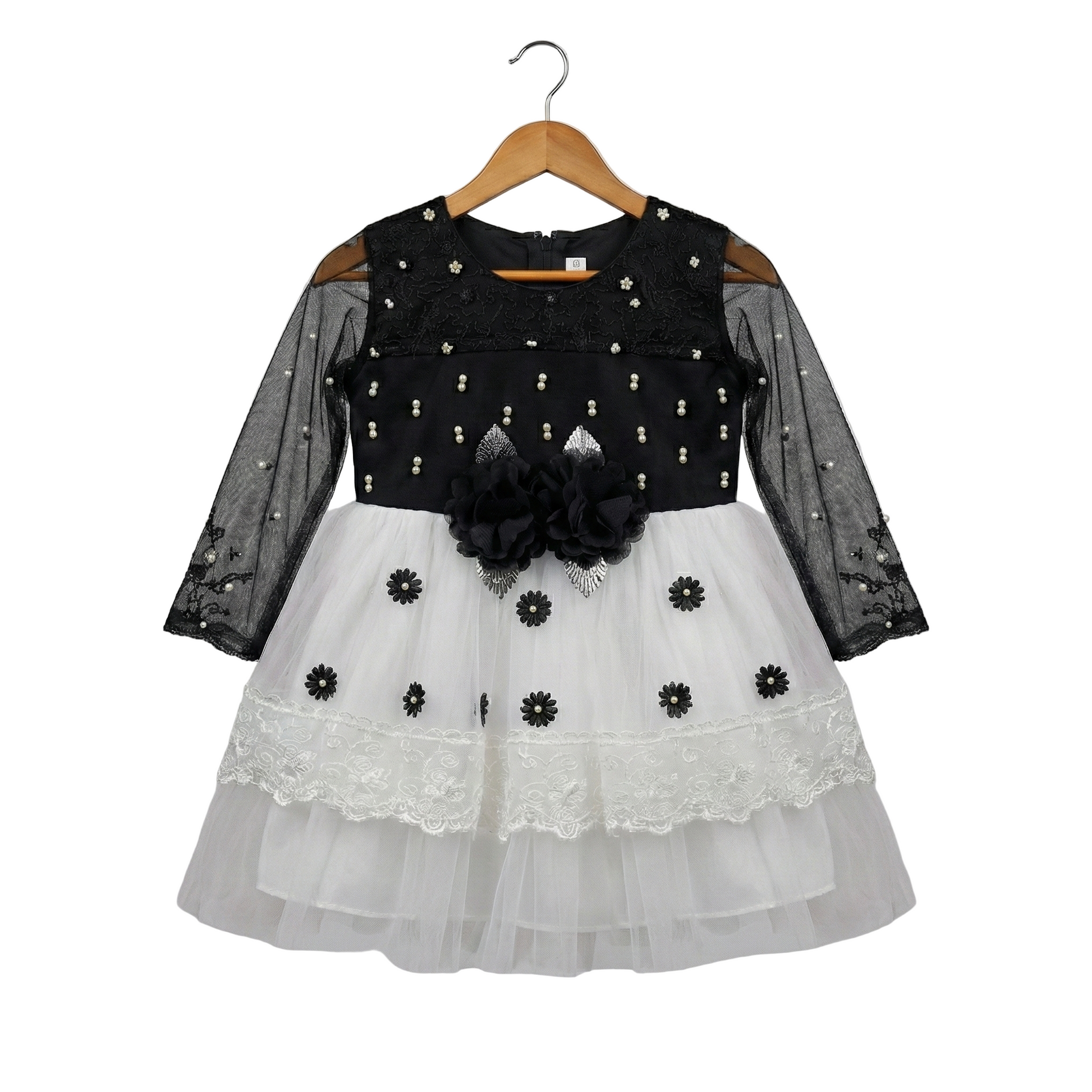 Features: 3D Flower motif, pearl detailing on chest and sleeves, lace trims.
