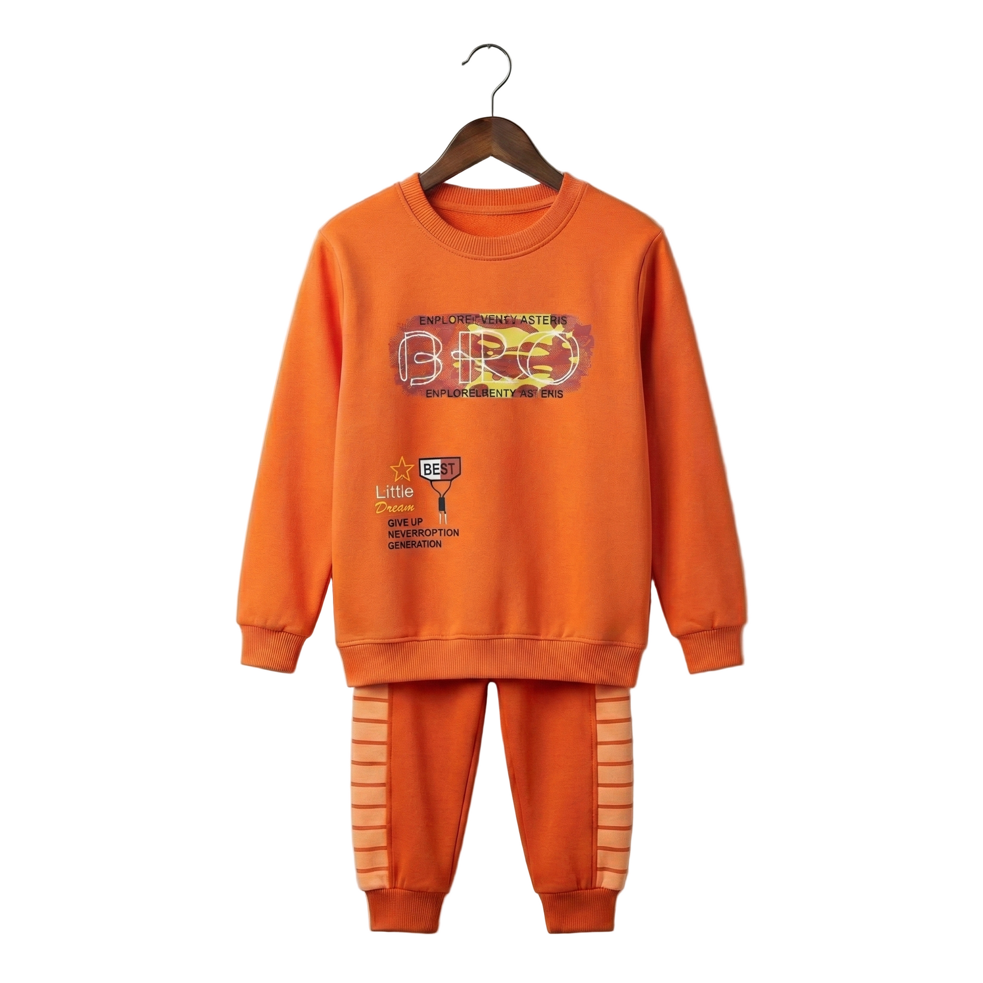 Trendy Design: Features a stylish "BRO" graphic print and sporty stripes on the trousers for a modern, athletic look.