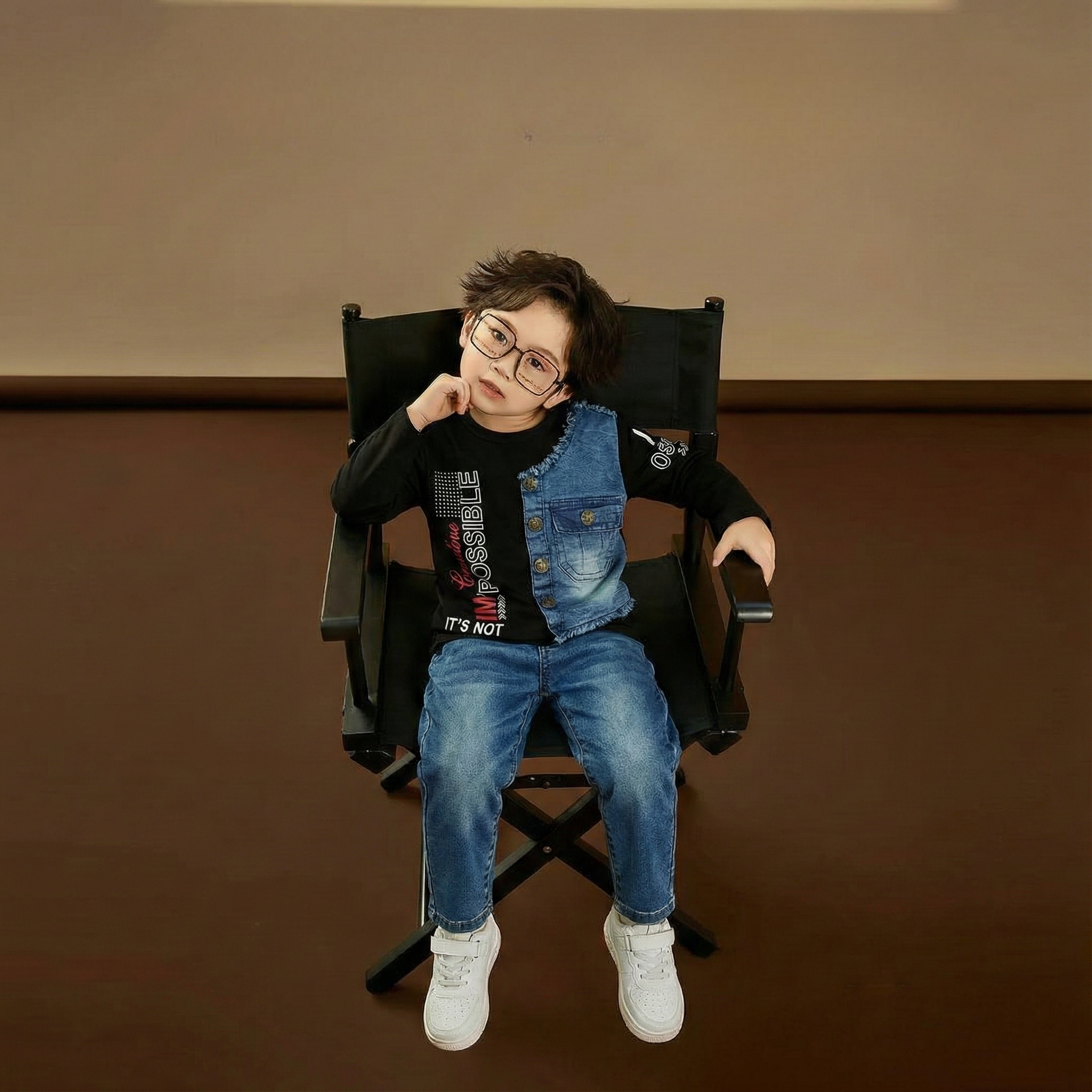 Upgrade your little guy's wardrobe with this effortlessly cool two-piece set, perfect for casual outings, photoshoots, or playdates. This outfit blends street-style edge with comfortable, wearable fabrics.