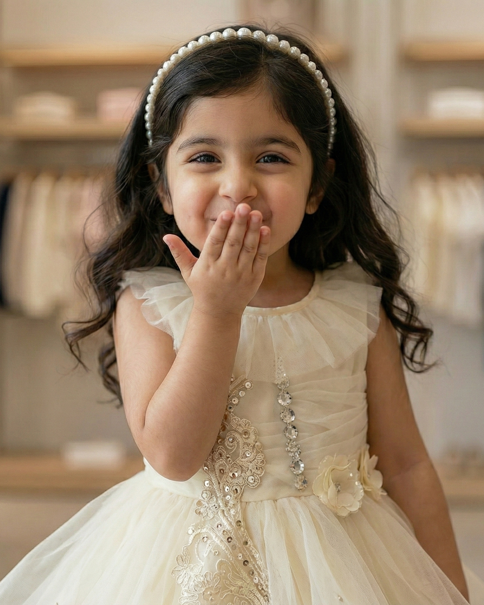 Get your little one ready for the spotlight with our Enchanting Ivory Pearl Tulle Frock. Designed for elegance and crafted for comfort, this premium dress is the ultimate choice for your fashion-forward girl.