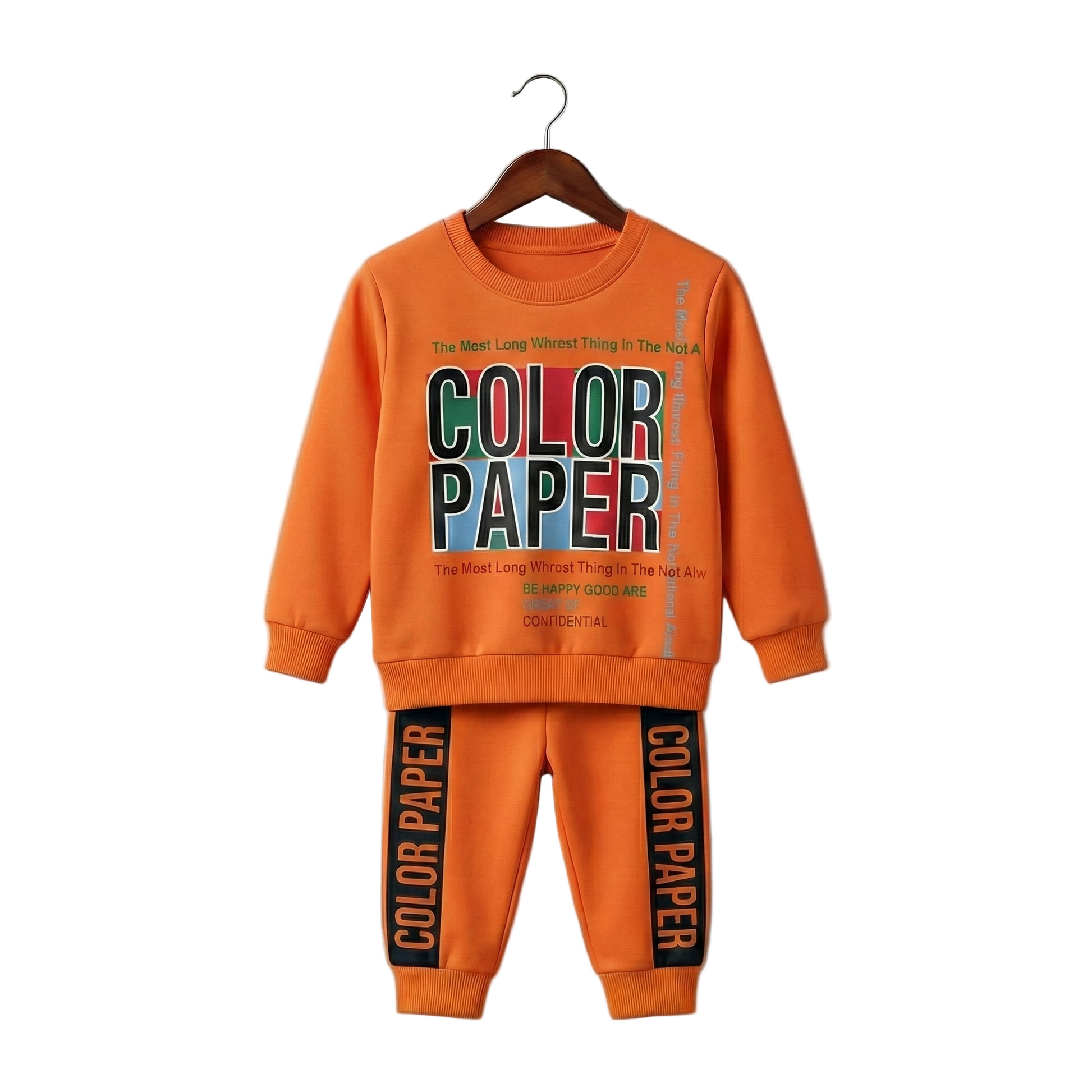 Add a pop of fresh color to your little one's wardrobe with our latest arrival! This ultra-comfortable Sky Blue two-piece set is designed for active kids who love to play in style. Featuring a bold "COLOR PAPER" graphic print on the chest and matching lettering on the pant legs, this outfit combines trendy streetwear vibes with the cozy warmth needed for cooler days.